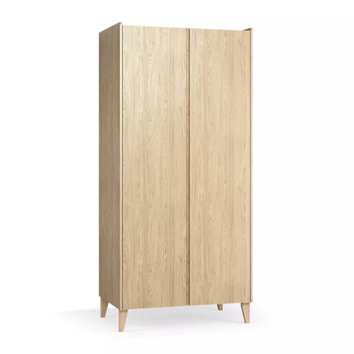 Armoire 2 portes Vox Muve couleur chêne allie élégance et praticité, grand espace de rangement avec 1 tringle et 4 tablettes réglables.