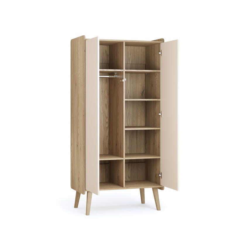 L'armoire 2 portes Vox Vintage Fresh apportera une solution compacte pour ranger les affaires de bébé avec ses dimensions 90x51xH185cm elle allie élégance et praticité, munie d'une penderie et de 6 étagères à hauteur réglable.