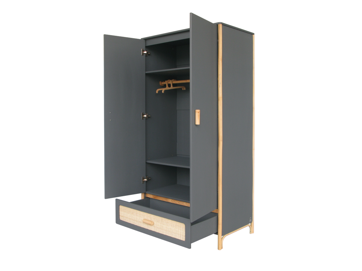 L'armoire 2 portes + 1 tiroir Océania Silex de la marque Théo est idéale pour allier décoration et rangement. Son style unique apportera une touche de nature à la chambre et la gardera ordonnée.