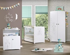 | Nouvelle collection de meubles pour bébé Sauthon Pitchou est personnalisable fille ou garçon. |