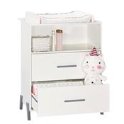 | "Commode 2 tiroirs et 1 niche pieds gris avec dispositif à langer - JOY GRIS La commode à langer JOY de style scandinave est idéal pour une chambre de bébé sobre et tendance. La commode combine modernité et fonctionnalité. Elle possède 2 grands tiroirs et une grande niche pour vous permettre de ranger l'essentiel des affaires de bébé. Vous pourrez ainsi changer bébé en toute sécurité jusqu'à ses 11 kg en ayant l'essentiel à portée de main. Pour une chambre complète, vous pourrez associer à votre commode, les lits 120x60 ou 140x70 et l'armoire 2 portes JOY. Caractéristiques de la commode JOY: Dessus, traverse arrière dispositif à langer, dessous, cotés, tablette niche en panneaux de particules mélaminés décor blanc. Faces tiroirs en panneaux de particules mélaminés décor blanc, chants blancs, et laquées 1 face Blanc. 4 pieds et 2 poignées en hêtre laqués gris foncé. 2 joues du dispositif à langer en panneaux de fibres de moyenne densité (MDF) laquées blanc. Fabrication française Garanti sans solvant Conforme aux normes de sécurité en vigueur Afin d'utiliser la commode en toute sécurité, elle doit être fixée au mur; sangle fournie. Le dispositif à langer est utilisable jusqu'aux 11 kg de l'enfant. Dimensions de la commode JOY: 76 x 103 x 66cm Dimensions utiles dispositif à langer: 68x52cm" |