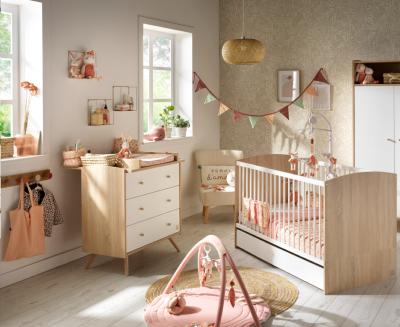 Ensemble lit 140x70 + commode + dispositif à langer Sauthon Access Bois/Blanc
