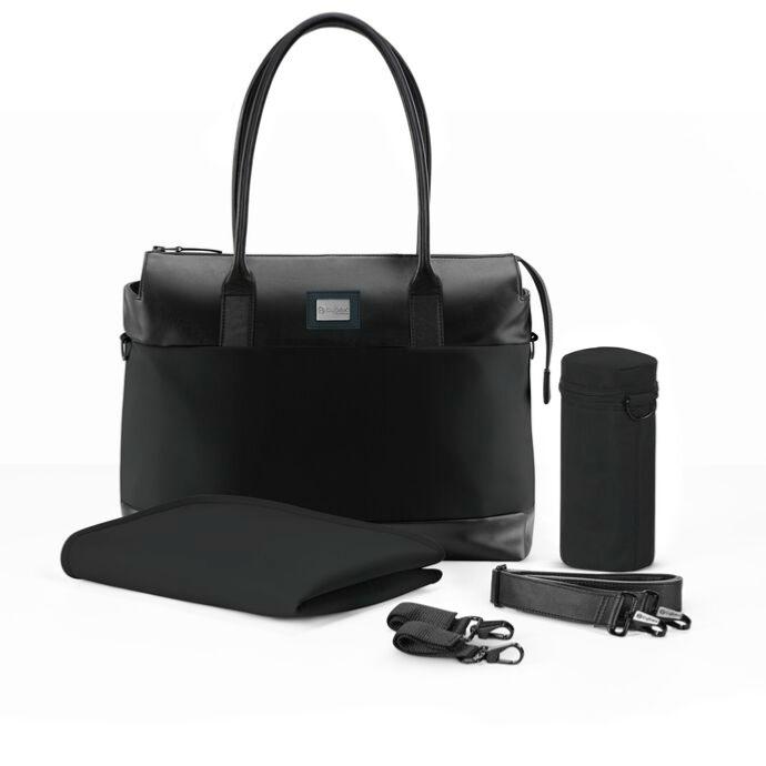 Le sac à langer de la CYBEX Platinum comprend un porte-bouteille thermos, un matelas à langer et un compartiment pour les affaires humides.